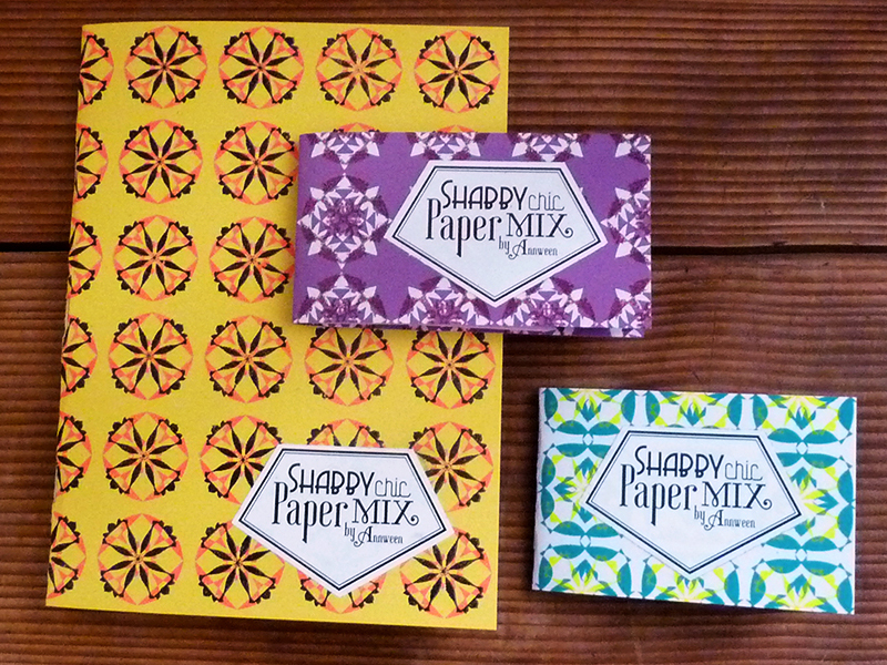 Les Shabby Chic Paper Mix sont des carnets uniques, entièrement fabriqués à la main. Les couvertures sont réalisées en sérigraphie et le corps du carnet se compose d'un mélange de papiers neufs, vintages et anciens, dont certains ont gardés la trace de leur utilisation précédente. Chaque feuillet est choisi avec soin pour s'harmoniser avec l'ensemble des autres éléments du carnet.